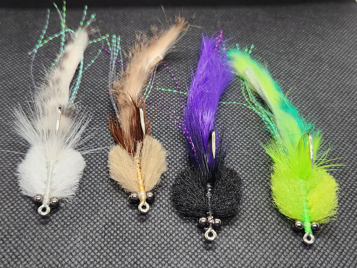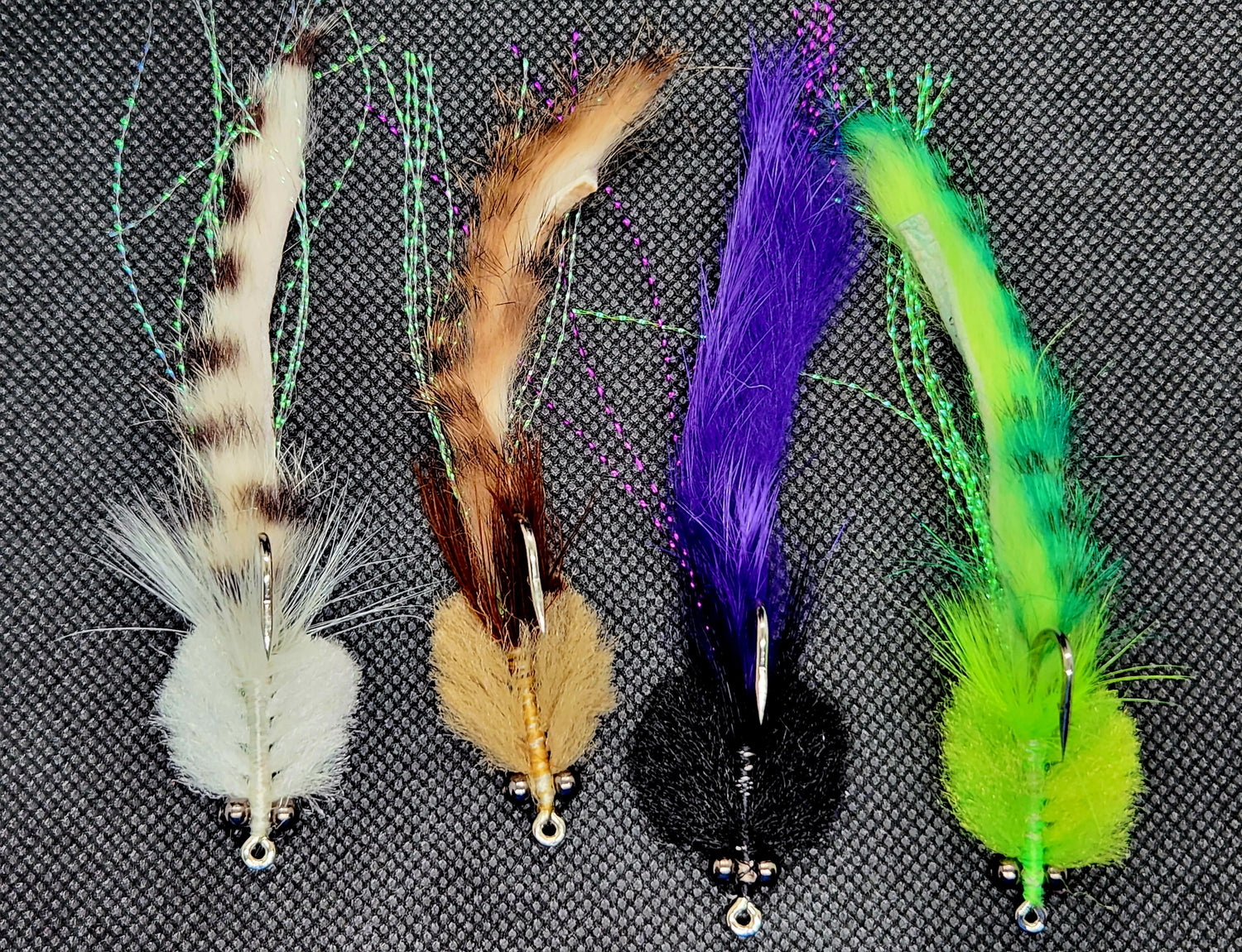 Offered in 2 selections- 4 Fly Selection - one of each of the following colors Black / Purple, Tan, Chartreuse and White. 8 Fly Selection - 2 of each color