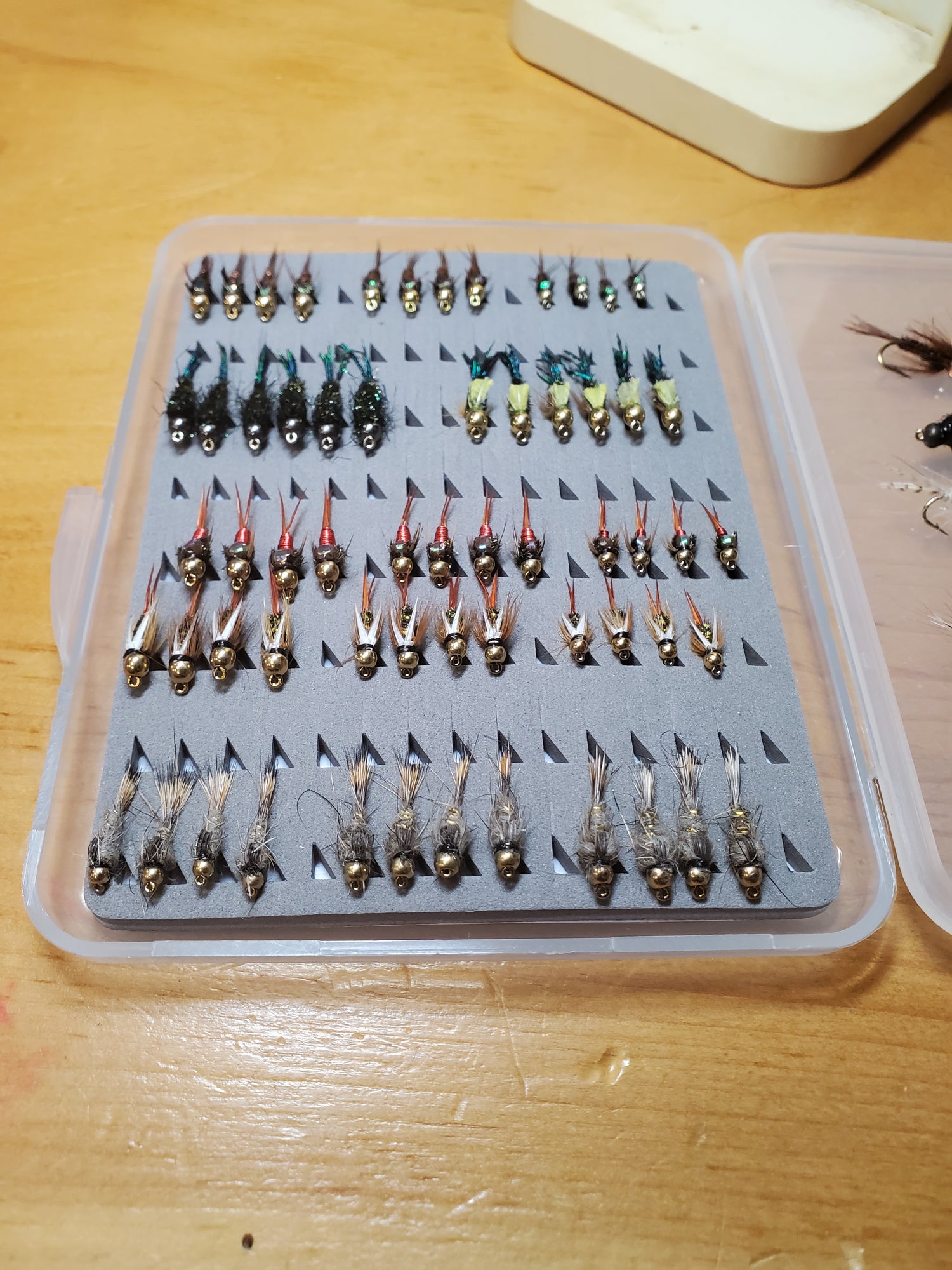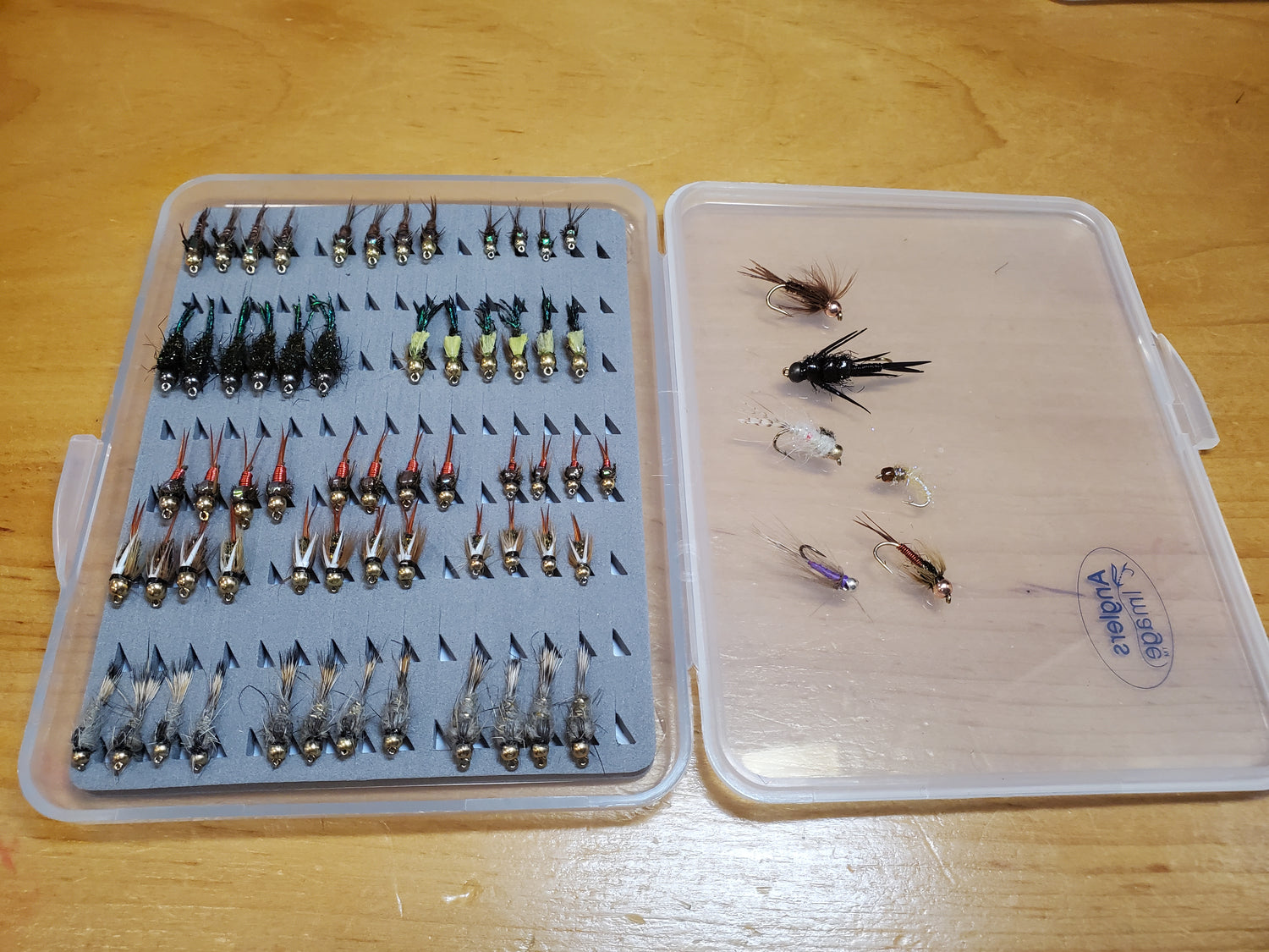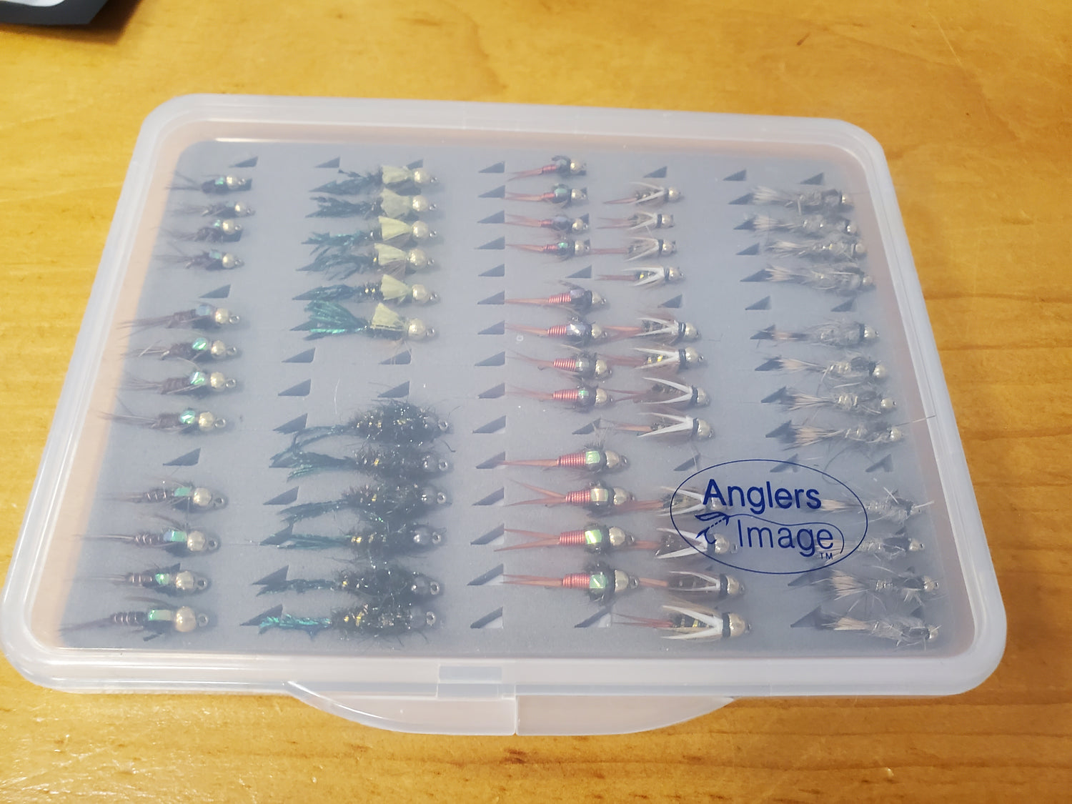 This 66 Fly Selection includes size #12 - #16 flies. in the proven patterns, plus a half dozen of our custom Trout flies. Flies are in an Anglers Image slit foam nymph box. 120 slits which gives you some room to add to your collection.