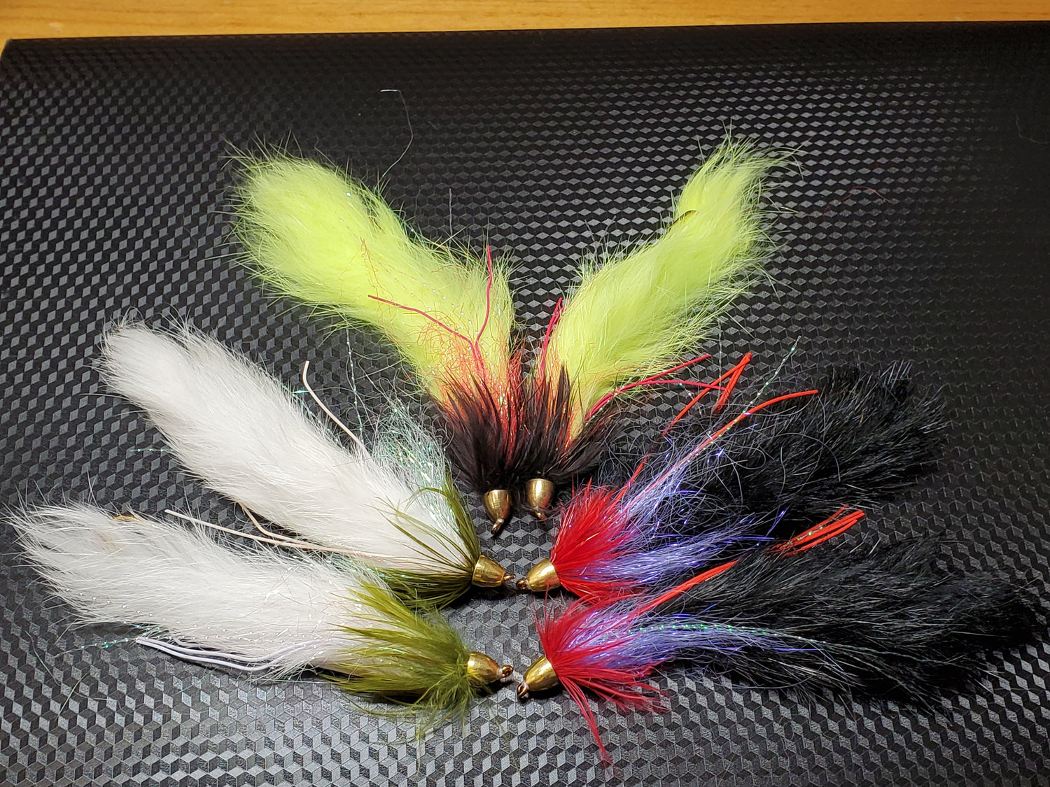 This is a listing for our Baxter House Cone Head Leeches. This is a 6 fly SELECTION. These are big streamers 5.5" - 6". These are made with Rabbbit Zonkers which coves alive when wet. This type of streamer fly has a long history of taking large Trout and other game fish.
