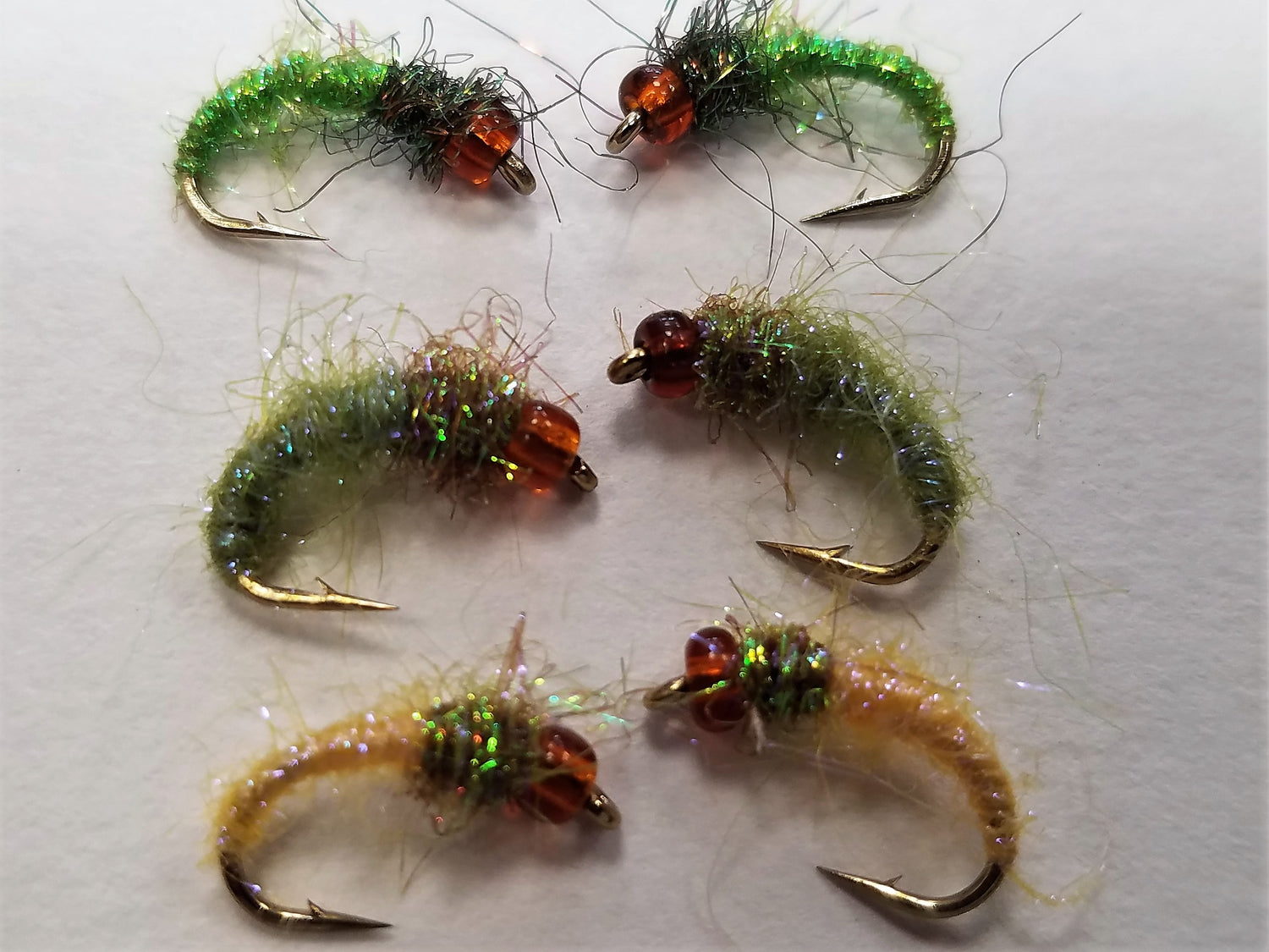 This is offered in 4 colors and 3 different sizes-#12, #14, #16 - Light Olive / Olive Brown, Caddis green / Peacock, Gray / Peacock, Light Yellow / Chocolate Brown
