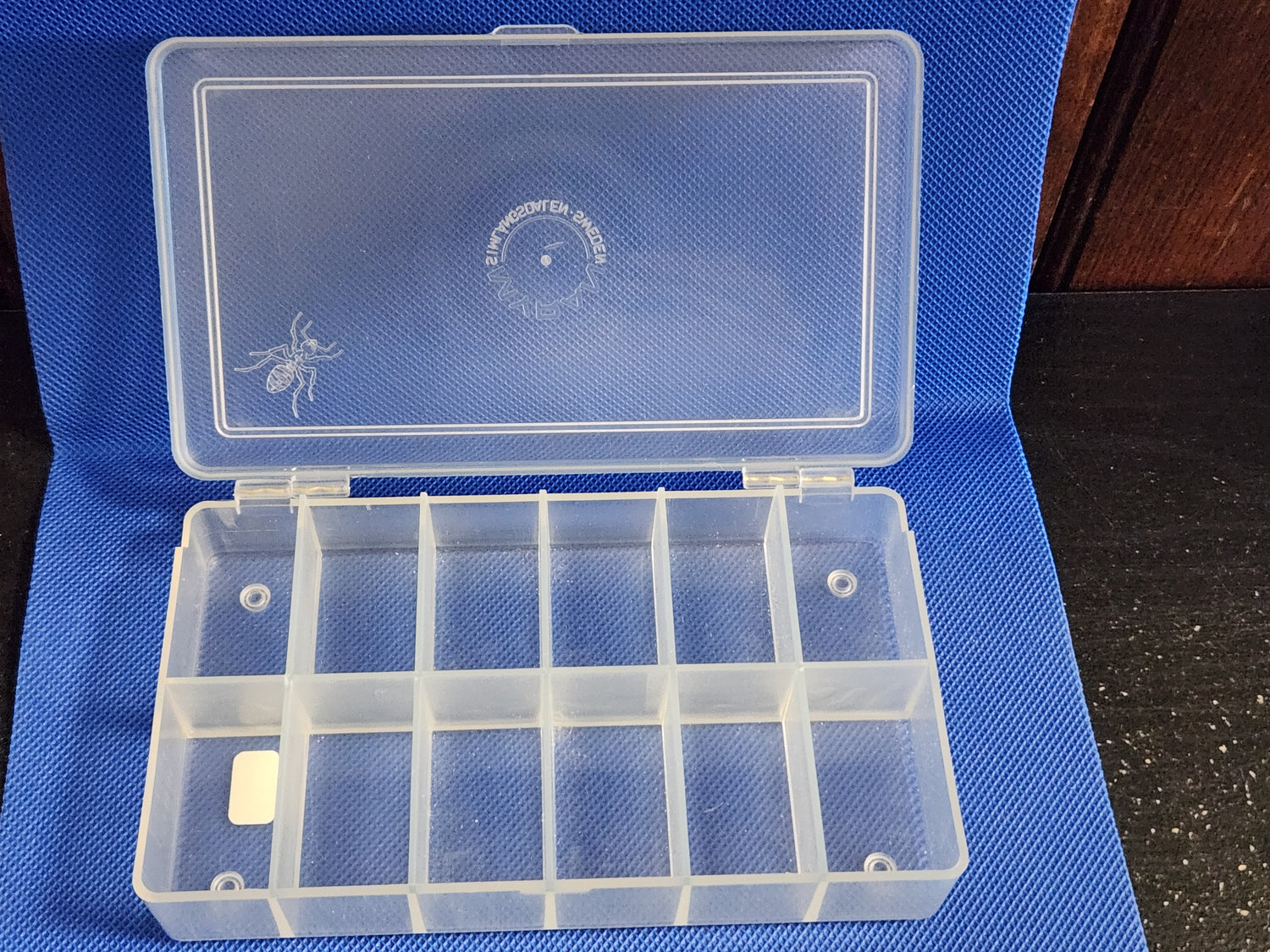 The Myran Large 12 Compartment Box is a high-quality fly box designed for fly fishing enthusiasts. Made of durable plastic in Sweden, this older unused stock item offers ample storage space with 12 compartments to organize and protect your fly fishing essentials. The Myran 1200 model is perfect for anglers looking to keep their tackle in order and easily accessible during their fishing trips.