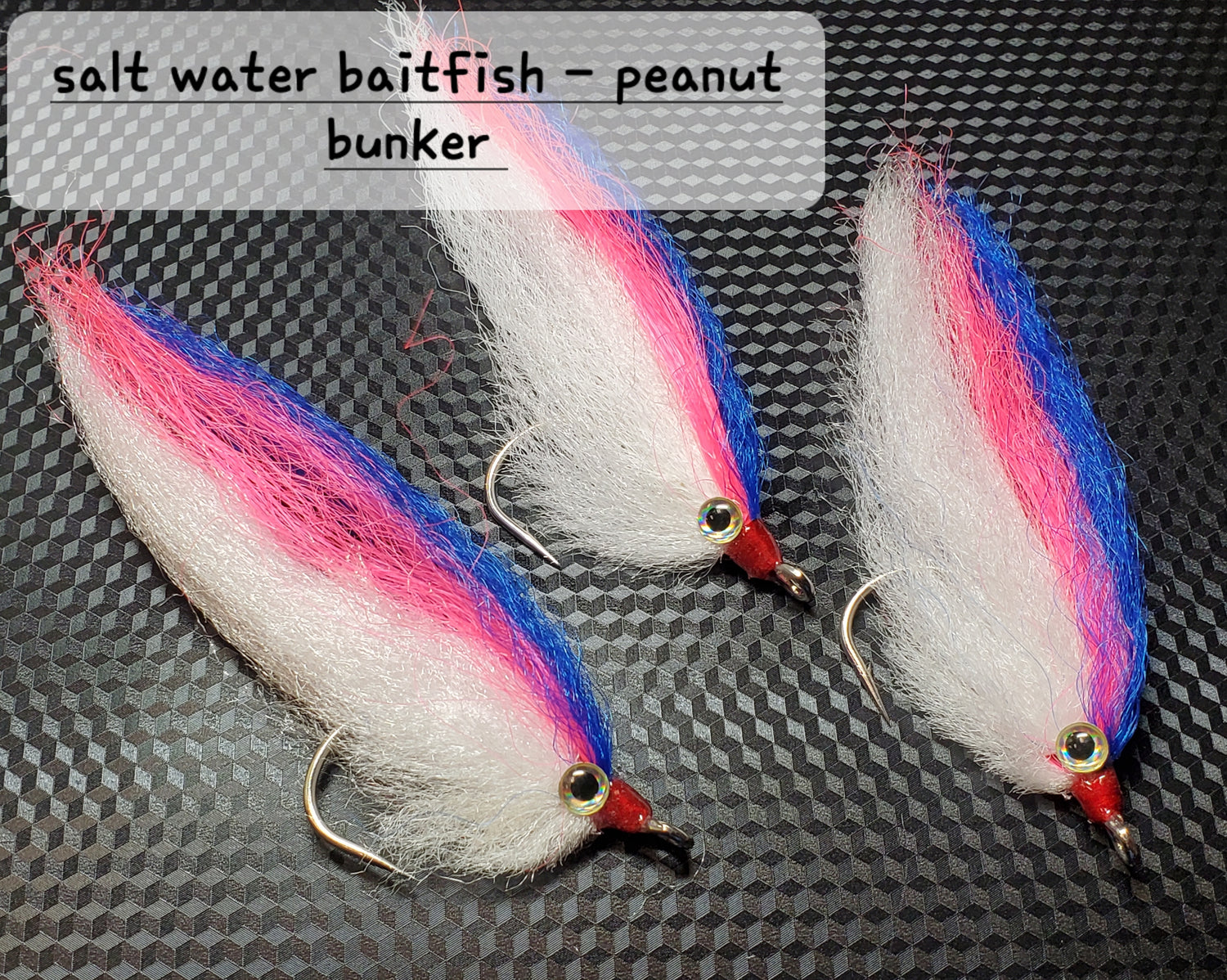 Salt Water Baitfish SELECTION- Peanut Bunker, Striped Bass Fly, Striper Fly, Bunker Fly
