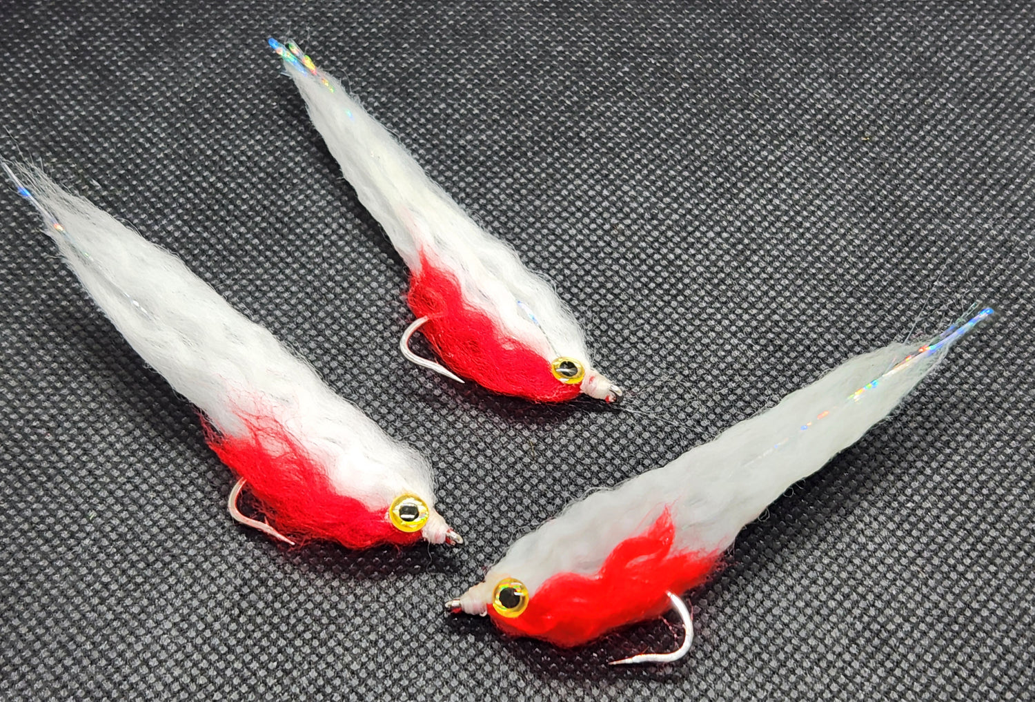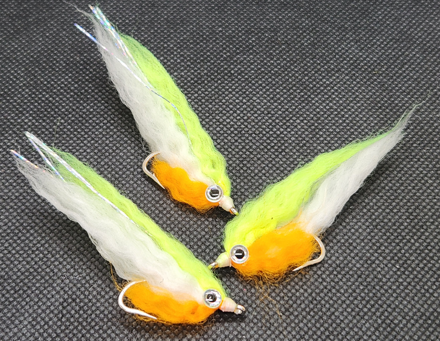 These are a Smaller version of an E P Style Baitfish. These are perfect for when the fish are keyed in on bait fry and other juvenile baitfish. These are a mix of synthetic materials that become very translucent when wet. The material that we use on these is much softer than the material used on Most EP Style Baitfish flies. This material absorbs water and thins the fly down to look exactly like many fry baits found in fresh and salt water.