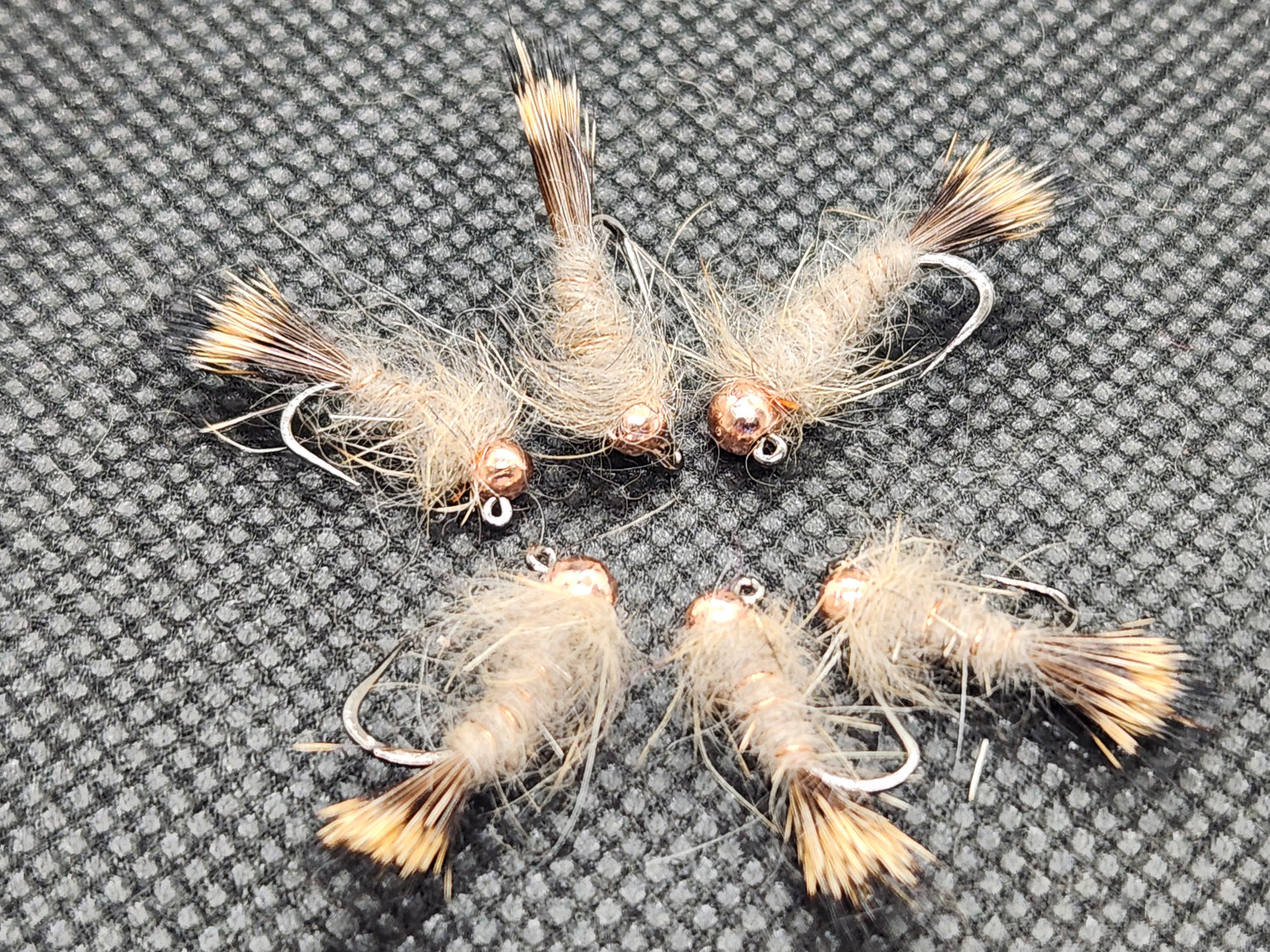These are custom tied on barbless #14 through #18, top quality jig hooks with a tungsten bead.
