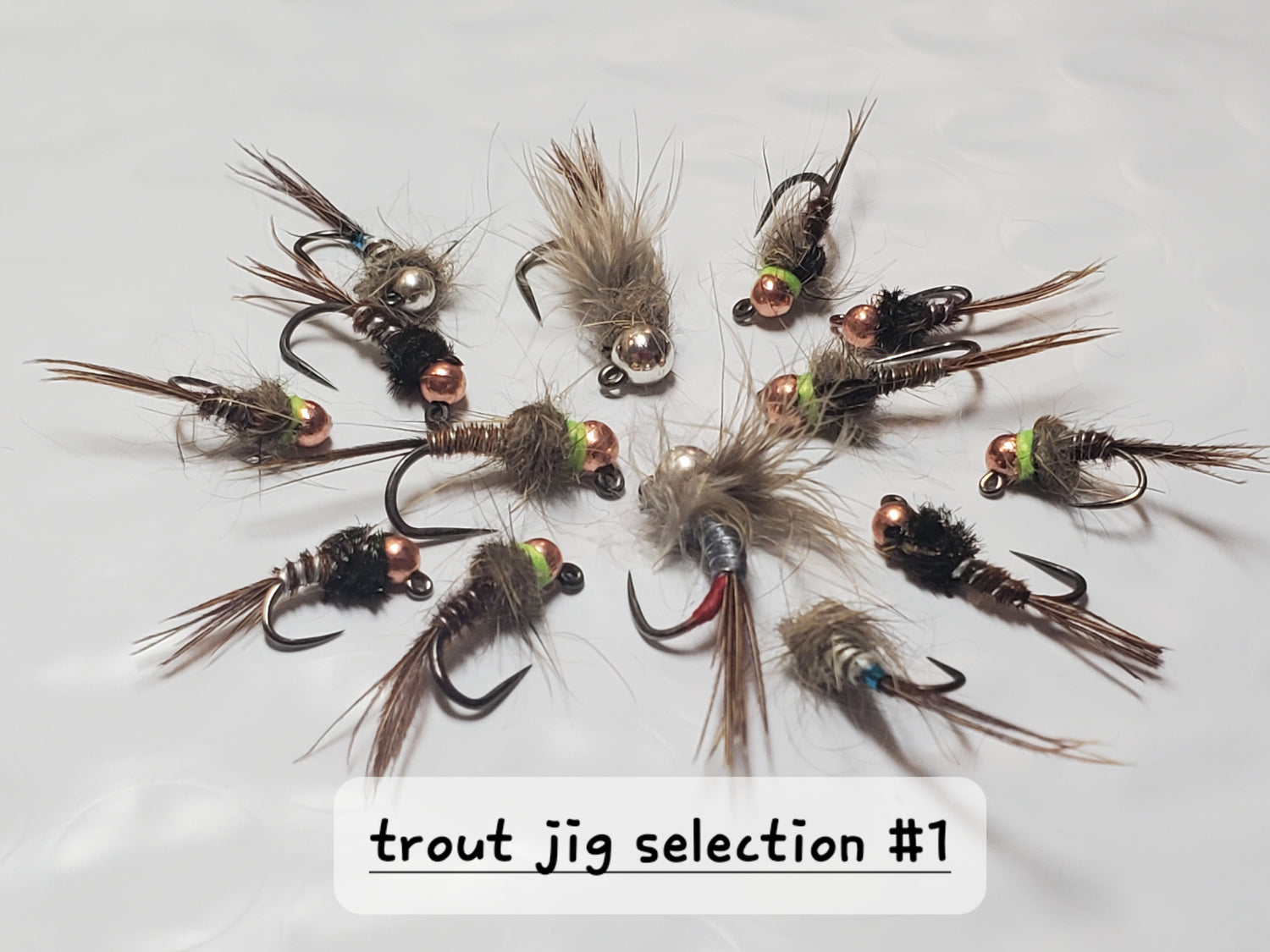 This is a great selection of Trout Jigs in the sizes that are right for most rivers. These are all tungsten bead flies tied on top quality hooks.